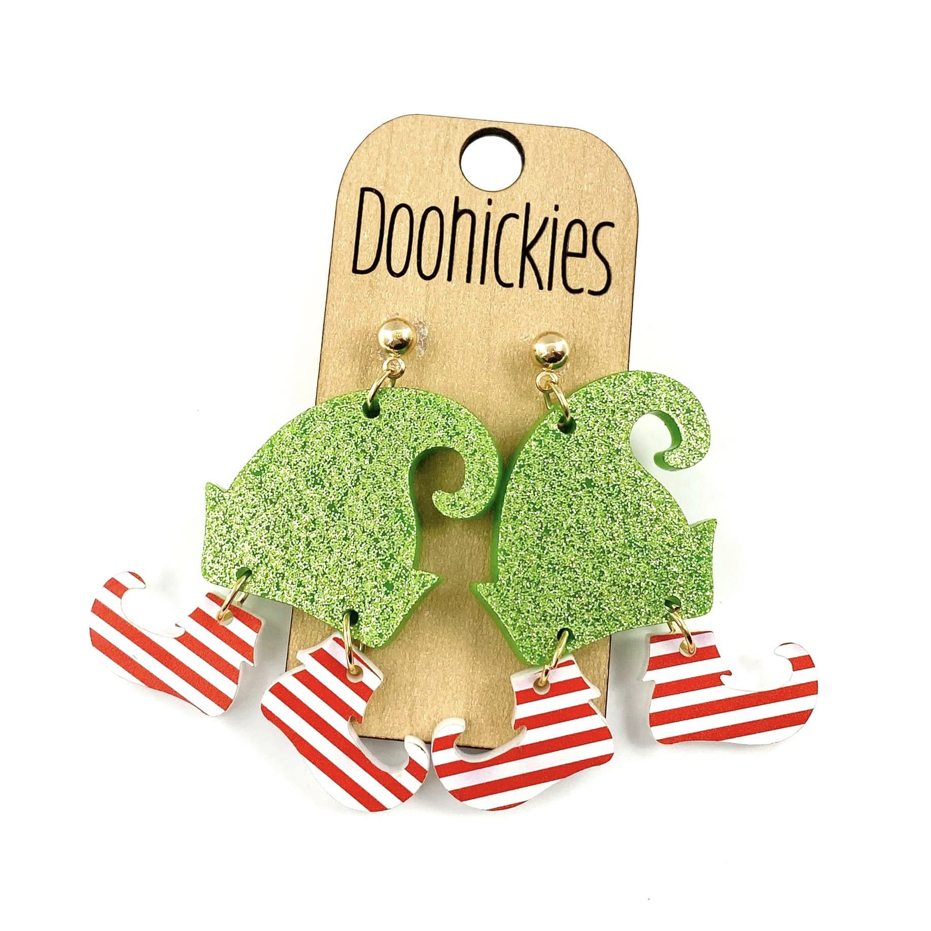 Add some sparkle to your holiday outfit with these Christmas Elf Dangles! Made with glittery acrylic, these festive earrings are perfect for spreading Christmas cheer. Whether you're hanging out with Santa or just sipping on some eggnog, these Christmas earrings are sure to be a hit.