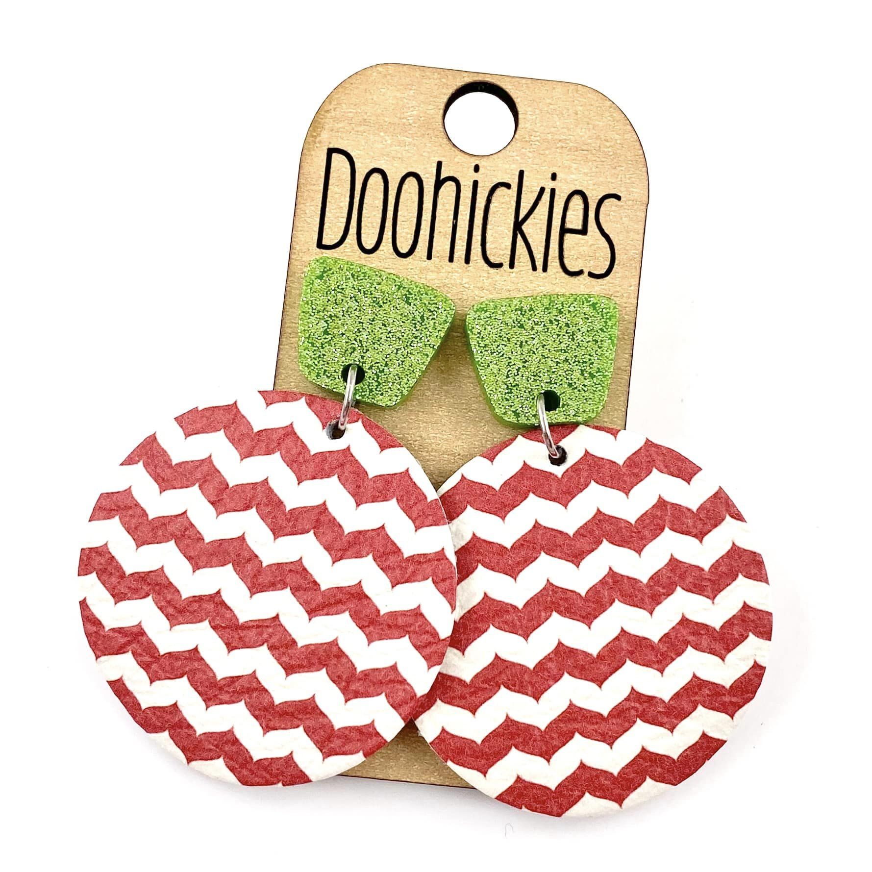 2" Green and Red ZigZag Piggyback Dangles - Christmas Leather Earrings