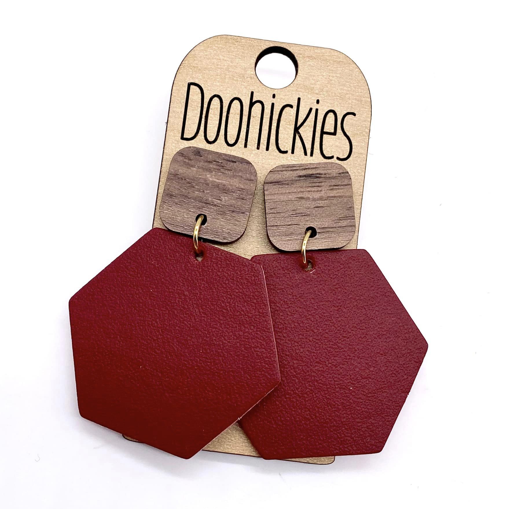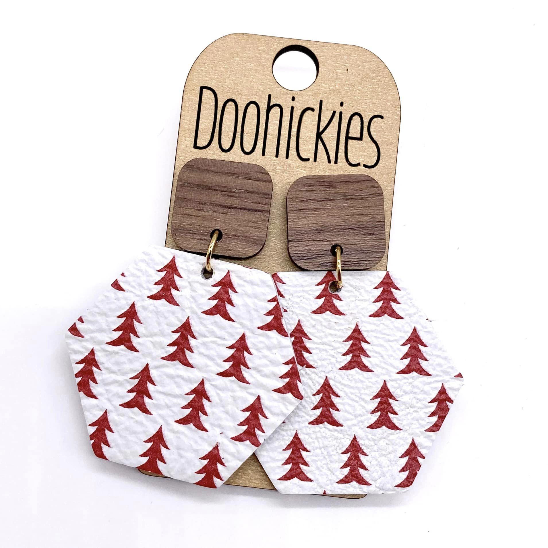 2" Walnut Cubes & Country Hexi Collection - Christmas Dangle Earrings