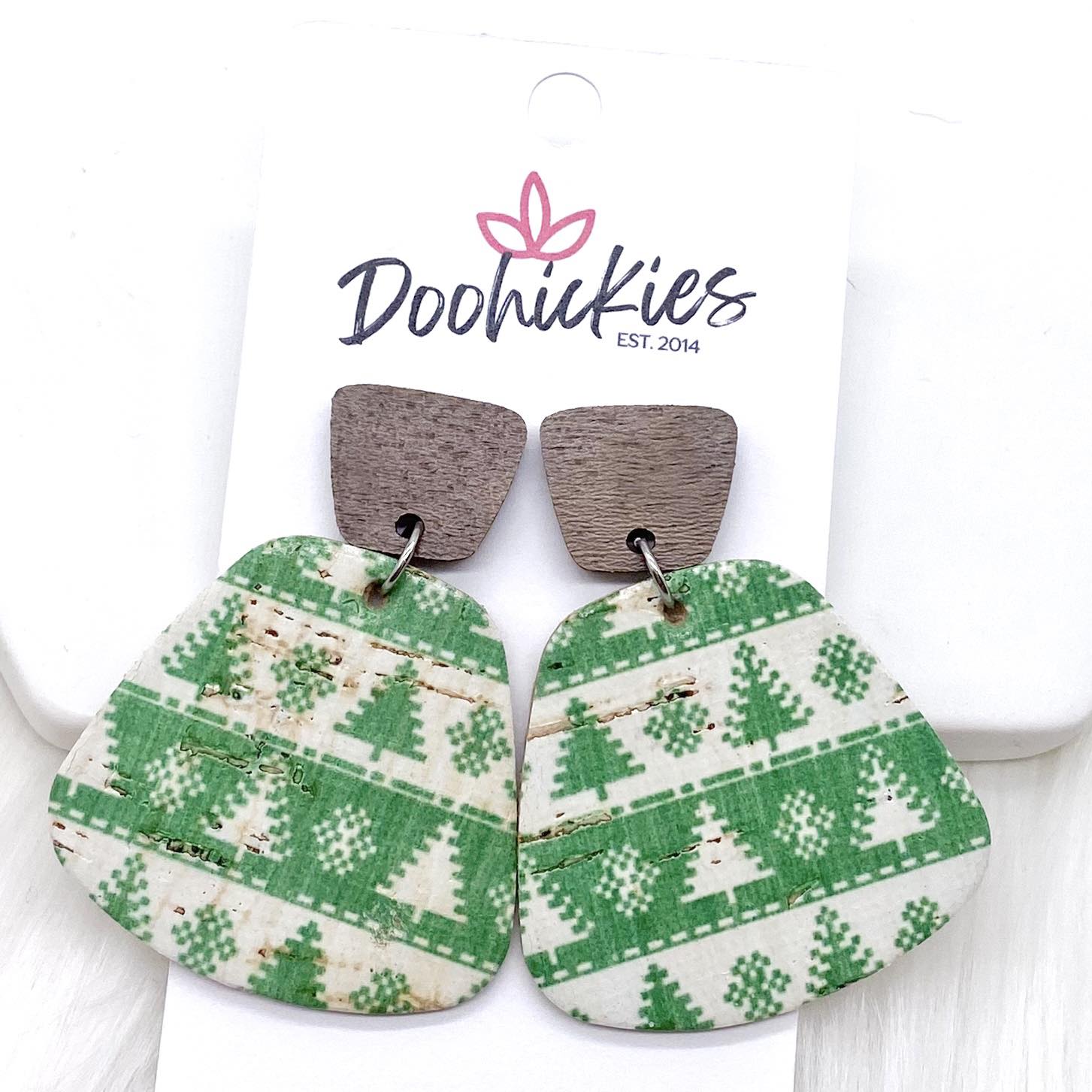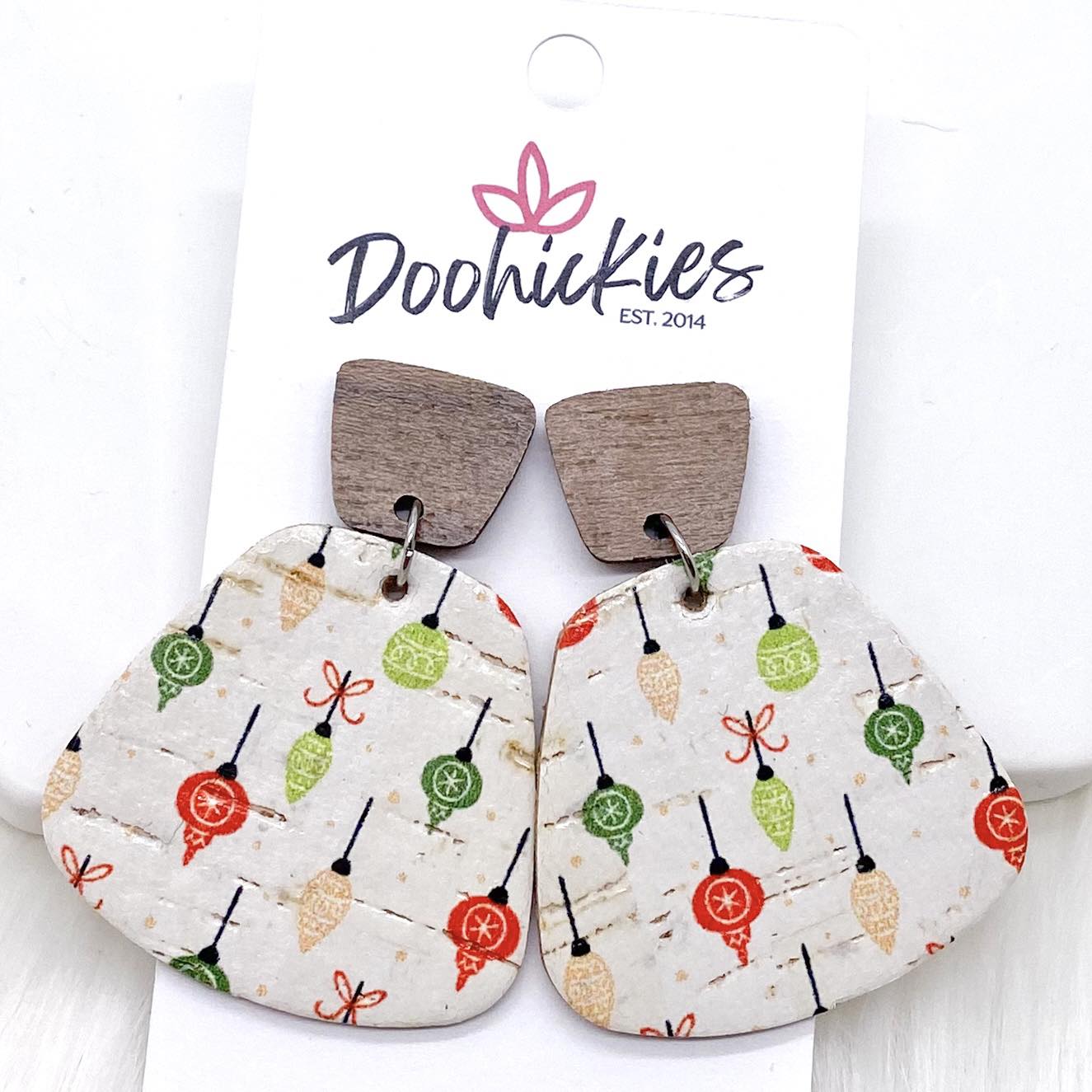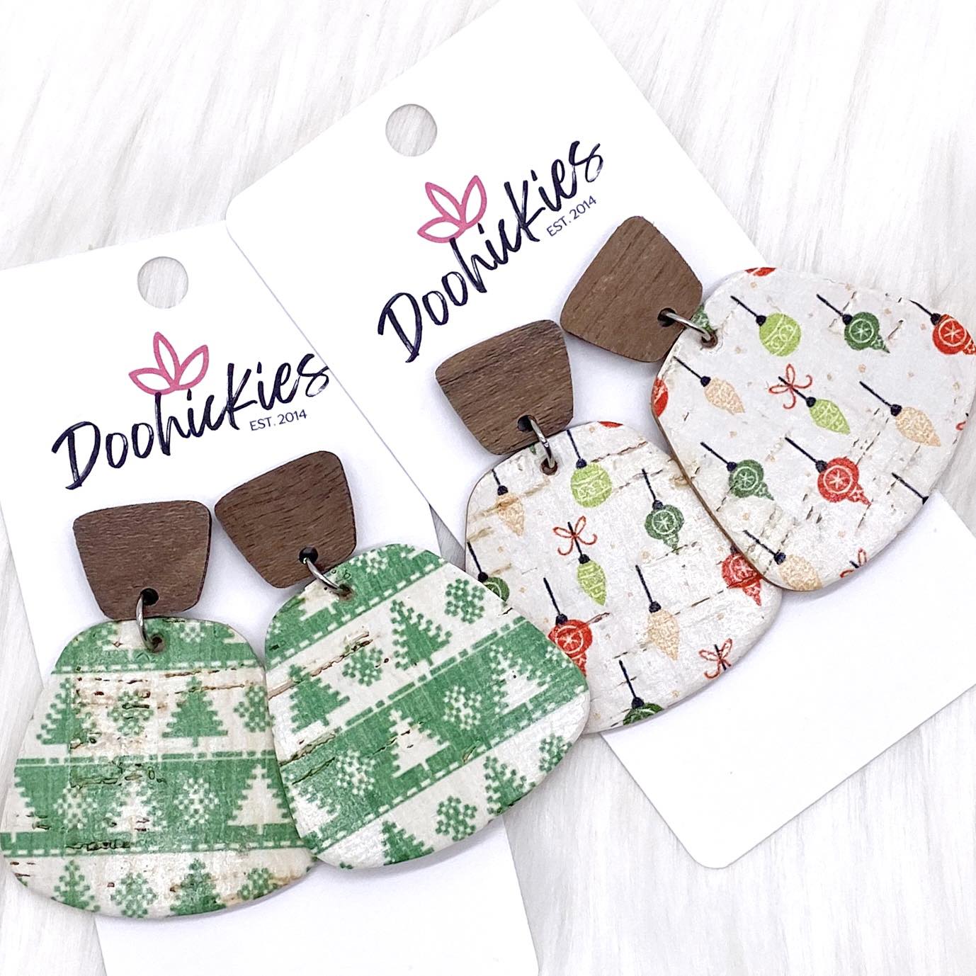 2" Walnut & Vintage Christmas Jasmines - Cork Dangle Earrings