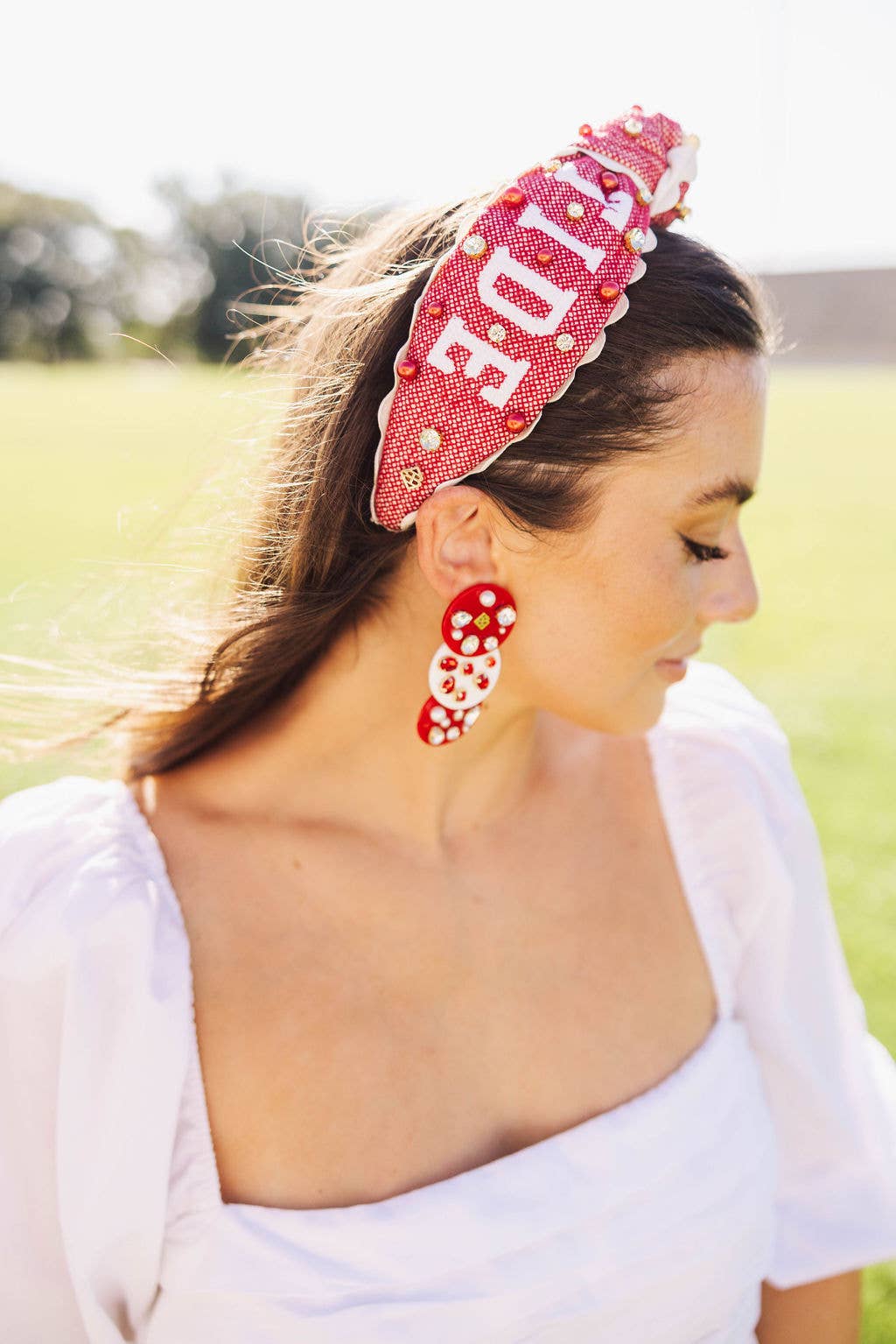* Cross Stitch ROLL TIDE Headband with Crystals and Pearls