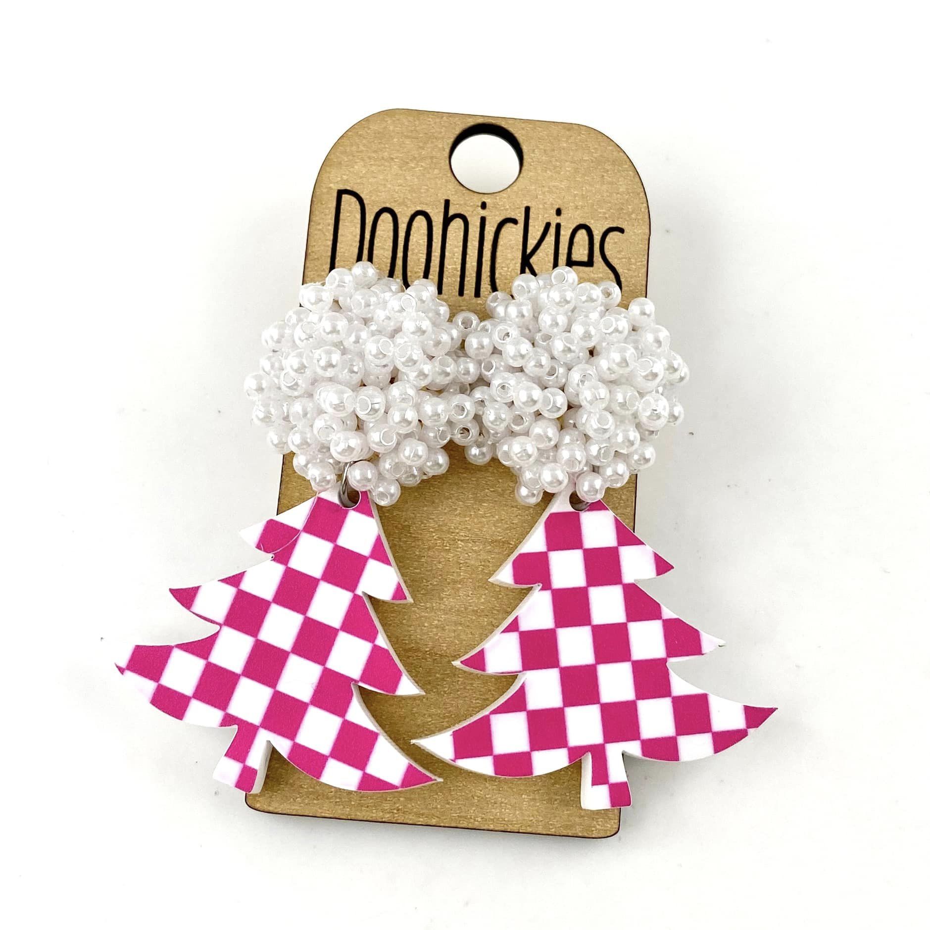 Boujee Pearl Beads and Hot Pink Checkered Swoopy Acrylic Earrings - Christmas Earrings