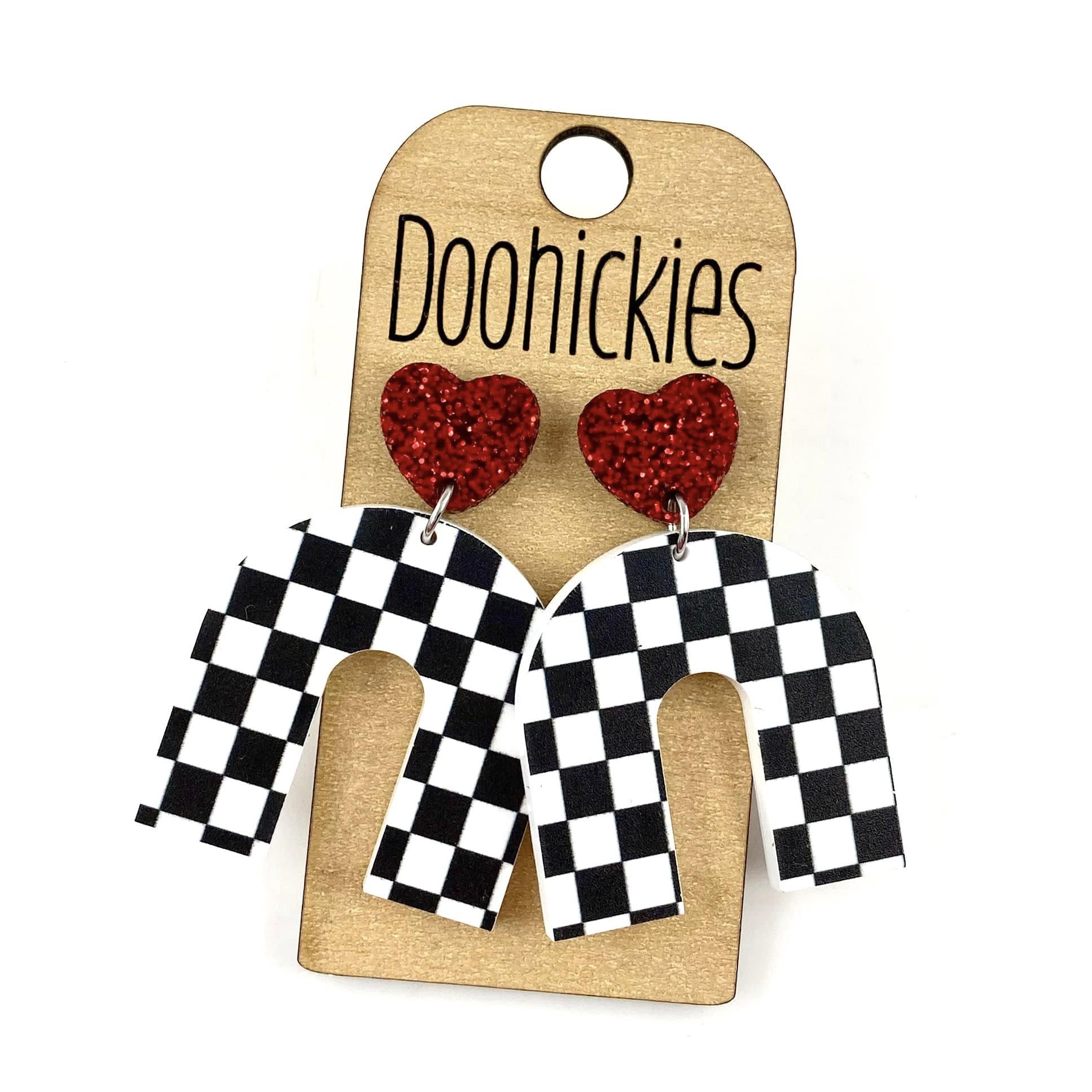 Checkered Rainbow Love Acrylic Valentines Earrings