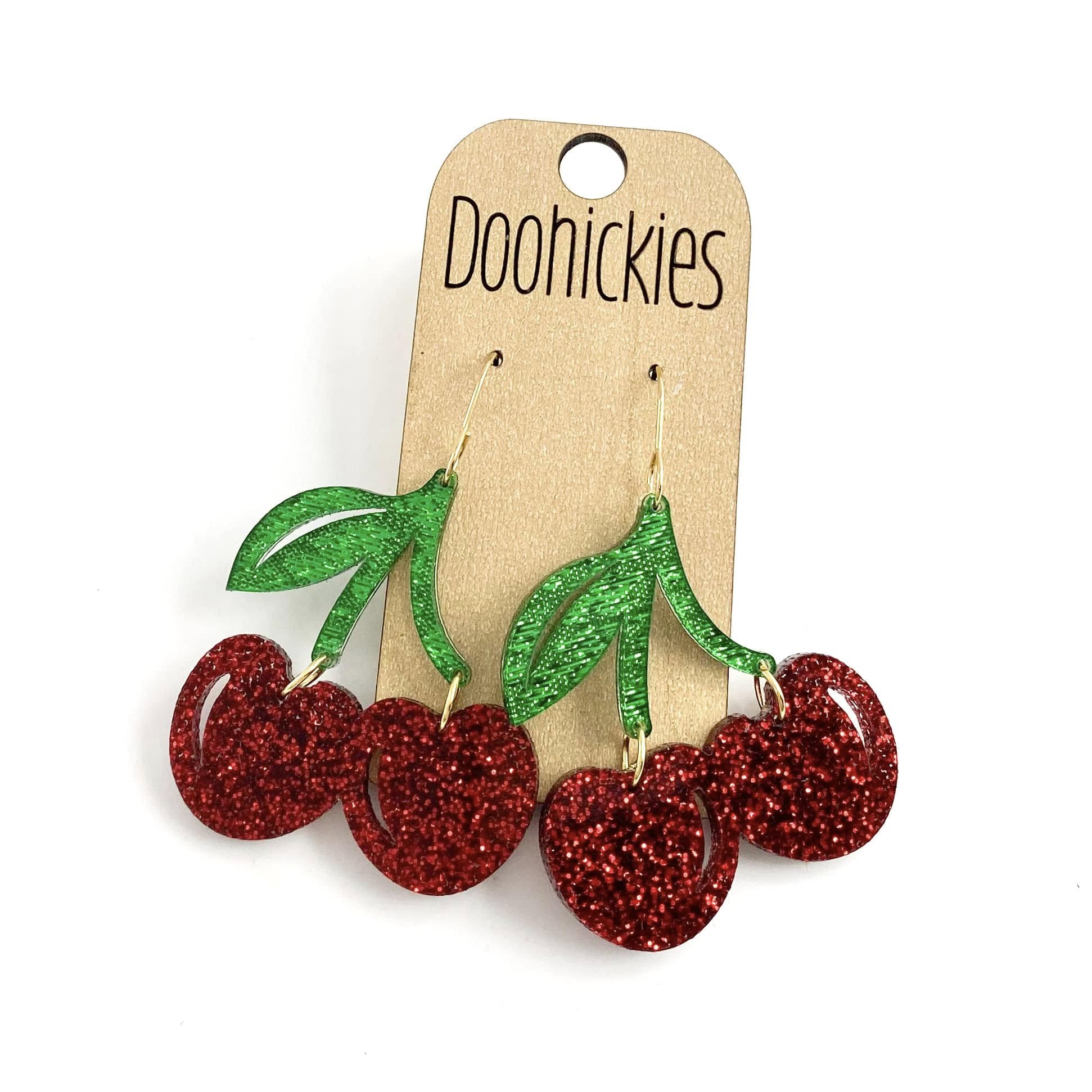 Cherry Love Glitter Acrylic Valentines Dangle Earrings