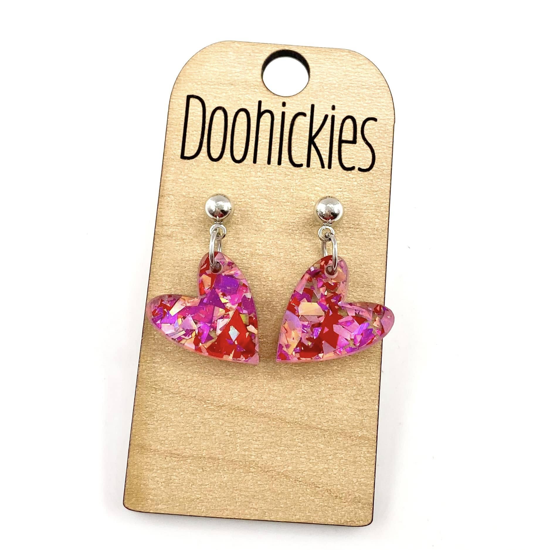 Dainty Confetti Hearts Acrylic Valentines Dangle Earrings