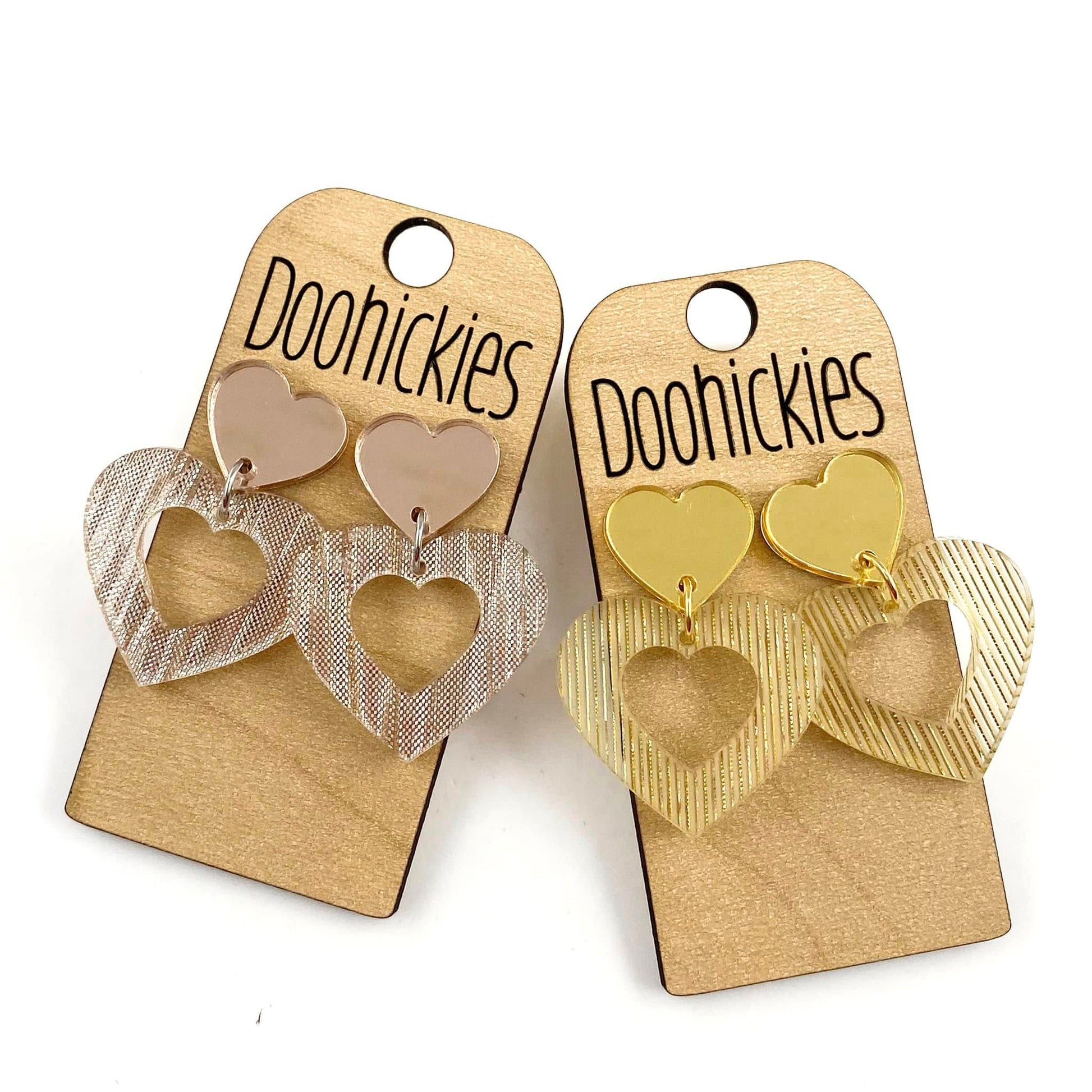 Shimmer Rain Double Cut Out Heart Acrylic Dangles Valentines Earrings