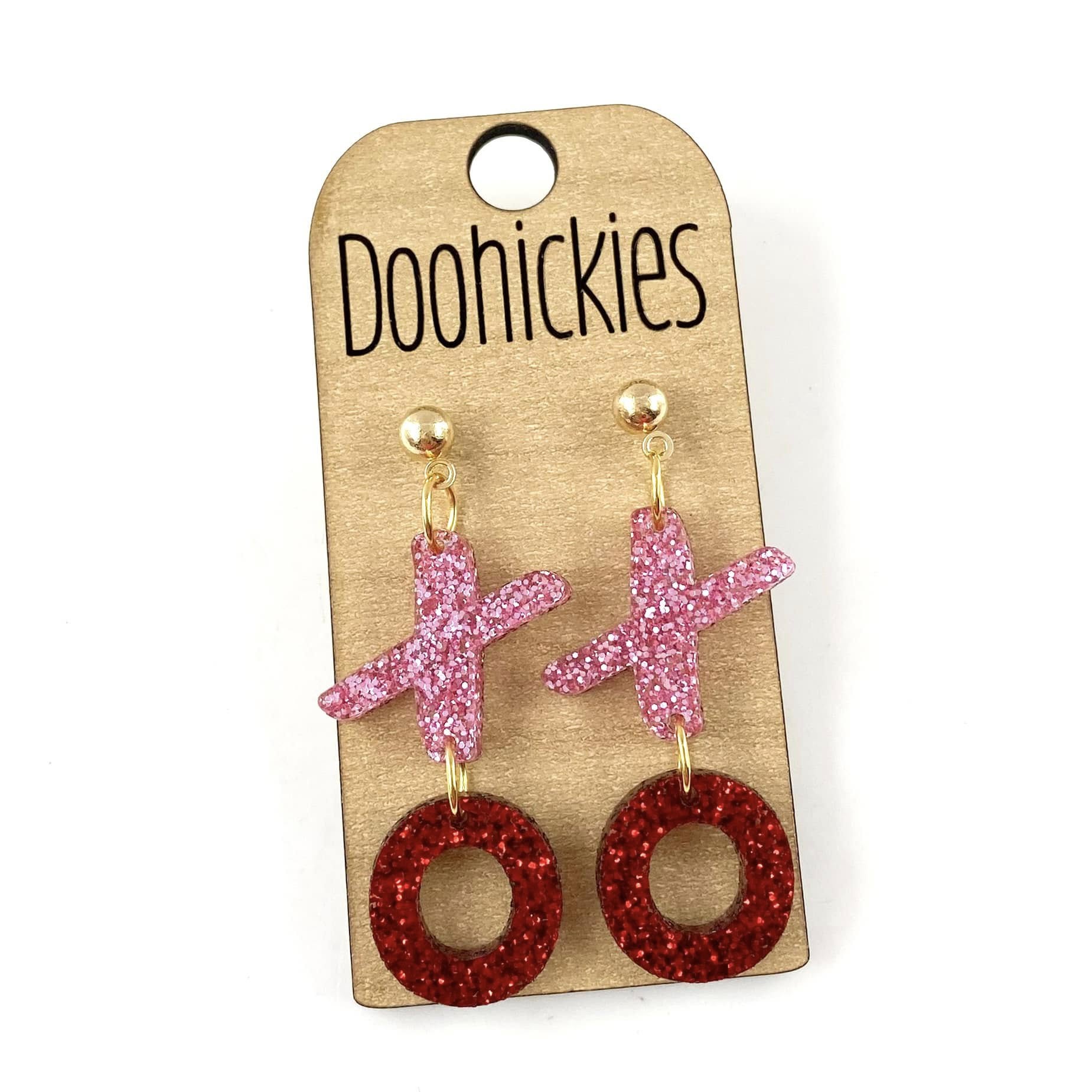 Pink and Red Glitter XO Acrylic Valentines Dangle Earrings