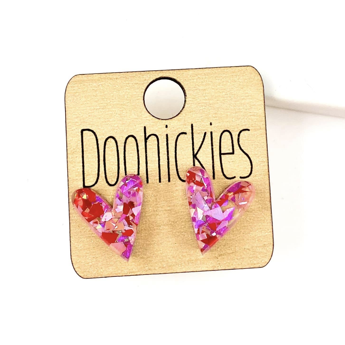 Sweetheart Chunky Confetti Valentine Heart Stud Earrings - 2 Size Options