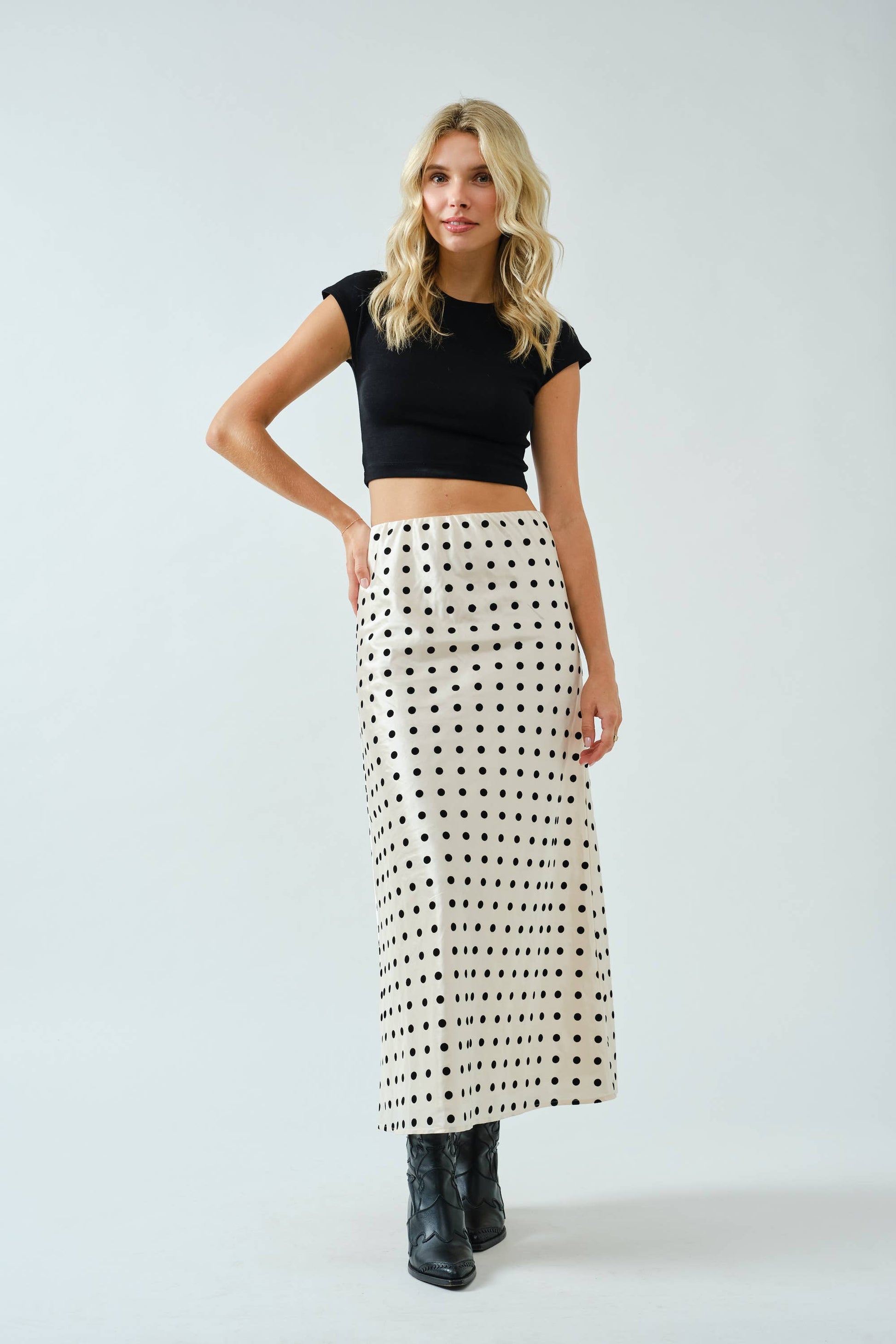 Polka Dot Satin Midi Skirt