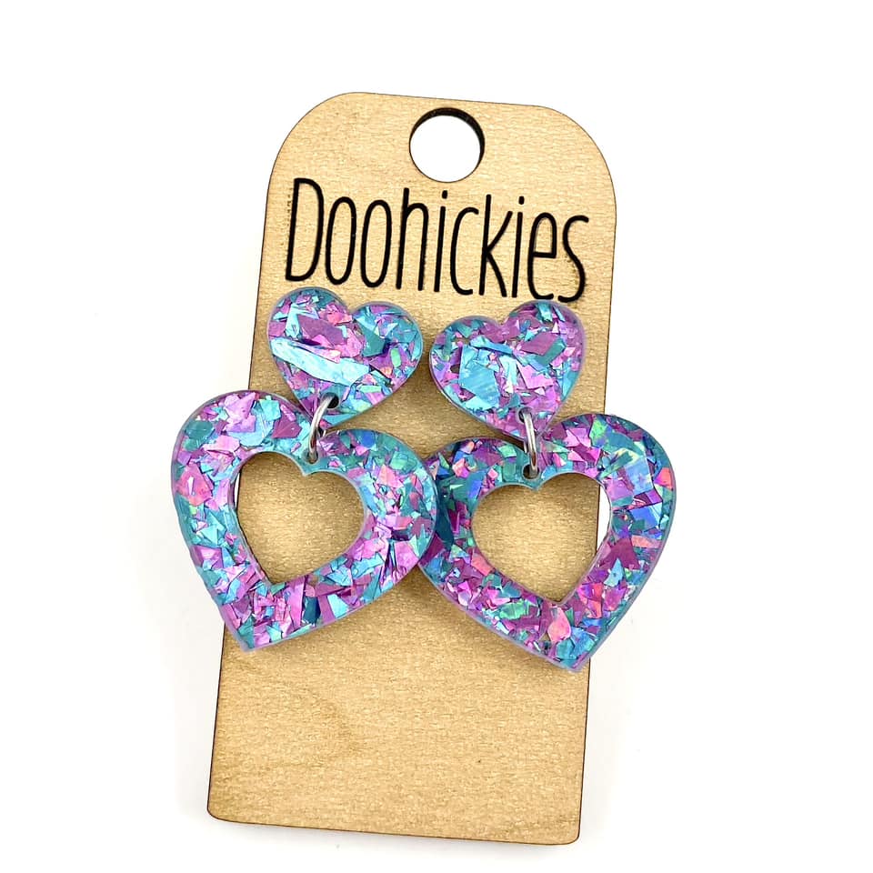 Chunky Confetti Double Cut Out Heart Acrylic Dangles Valentines Earrings